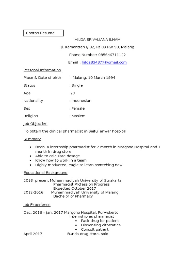 contoh resume kerjacontoh resume kerja bahasa inggris